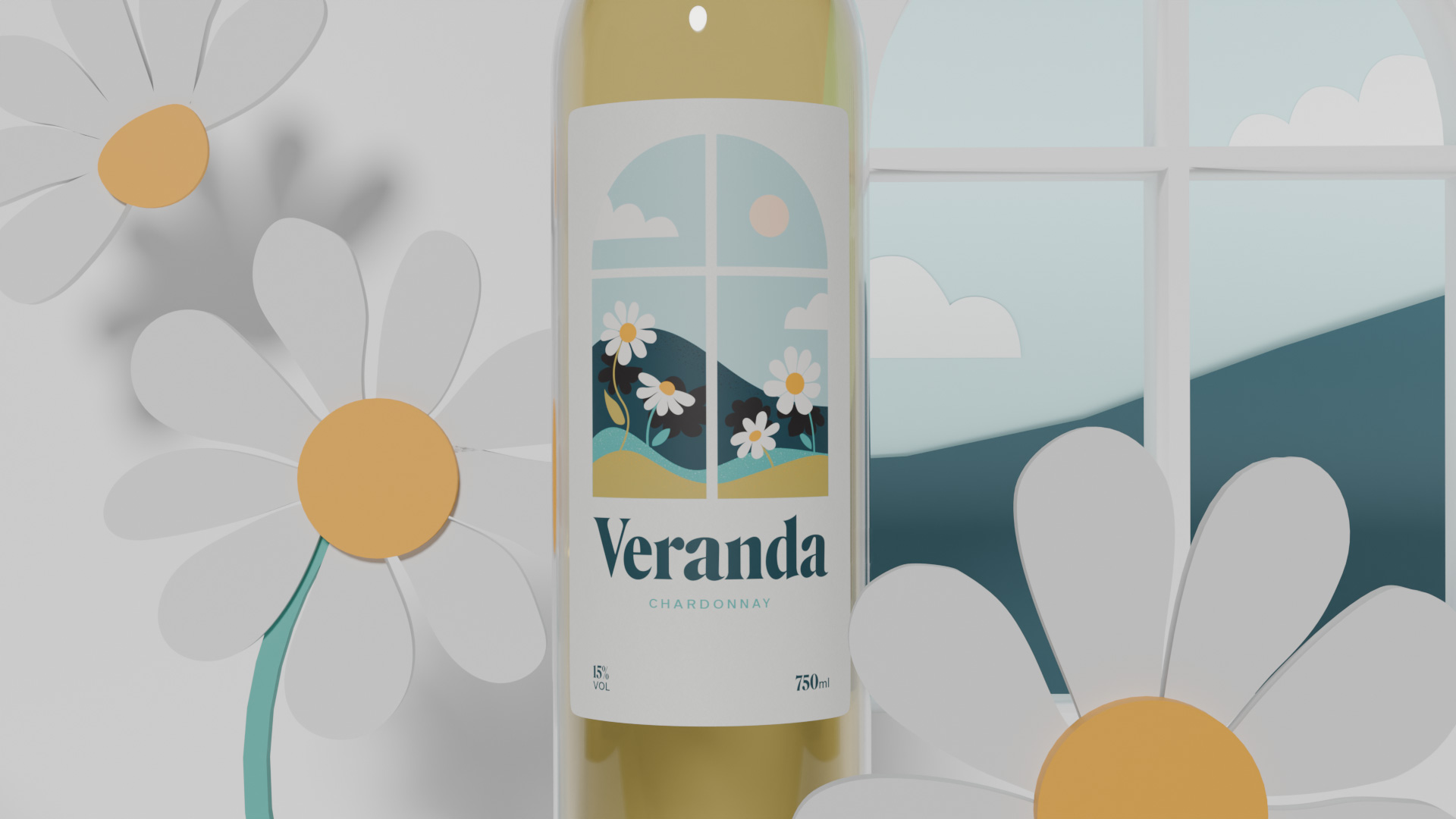 Veranda is a line of accessible wines produced by Royal Hill, intended for retail distribution. The goal was to create a visually compelling label design that reflects the wine's character and maintains a connection to the Royal Hill brand identity. The label design incorporates the signature symbol of Royal Hill – the stag. For the Chardonnay label, the concept centers around the imagery of a veranda window adorned with daisies. This composition evokes a sense of lightness, openness, and nostalgia, complementing the wine's bright and delicate flavor profile.