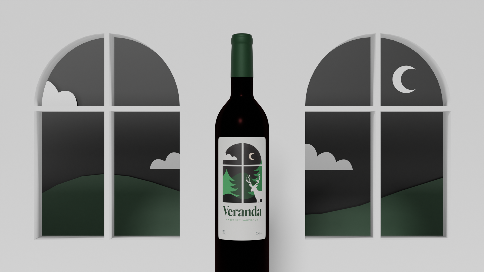 The design draws inspiration from the closed balcony of my late grandmother's house, adding a personal touch to the storytelling. The Cabernet Sauvignon label represents a dark, atmospheric night scene featuring a mystical forest. This design mirrors the wine's rich and deep character, creating a contrast to the lightness of the Chardonnay. The stag, Royal Hill's iconic symbol, is subtly integrated, connecting the wine's branding to its heritage. The wine bottle renders were created using Blender to provide a polished and realistic presentation.